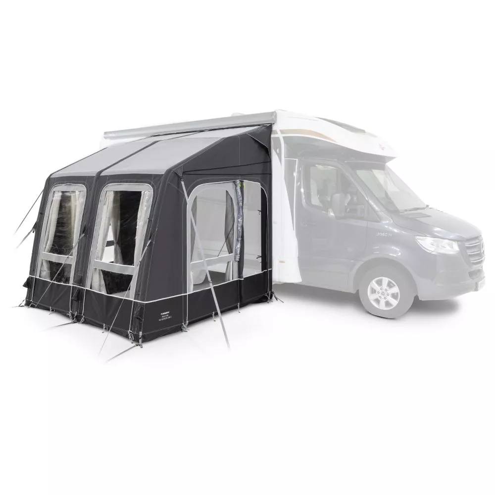 Das aufblasbare Vorzelt Dometic Rally Air All Season 260 S ist ideal für ist Wohnwagen und Wohnmobil mit einer Anschlusshöhe von 235 – 265 cm. Das höhenverstellbare und patentierte Multi-Height-System passt sich präzise an Fahrzeuge mit bis zu einer Anschlusshöhe von 265 cm an. Dadurch ist es sehr variabel und kann an mehreren Fahrzeugentypen angeschlossen werden.