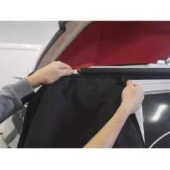 Ziehe das Isabella Busvorzelt-Sonnendach ASA einfach in die Kederschiene mit Ø 7,5 mm und spanne es mit den mitgelieferten Aufstellstangen und dem Abspannmaterial ab. In nur wenigen Minuten hast du einen optimalen Sonnenschutz und kannst deinen Urlaub in vollen Zügen geniessen!