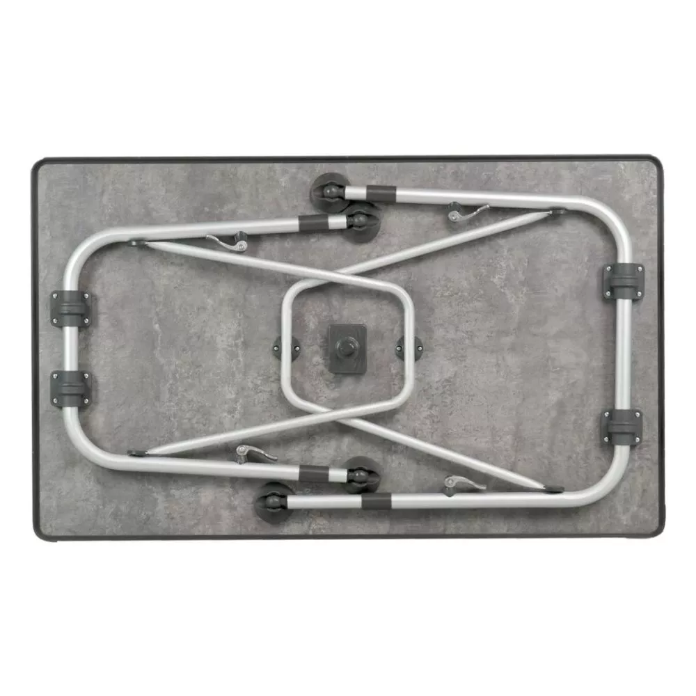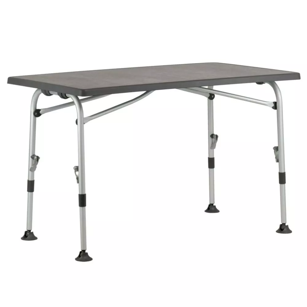 Der standfeste Camping-Klapptisch Westfield Superb 115 erscheint mit einem Gestell aus stabilem Aluminium-Rundrohr und einer wetterfesten Tischplatte in elegantem Design. Alle 4 Beine sind einzeln und stufenlos höhenverstellbar und mit einer einfach zu bedienenden Exzenterverriegelung ausgestattet. Die Tellerfüsse ermöglichen einen festen Stand, schonen den Vorzeltteppich und verhindern das Einsinken auf weichem Boden.