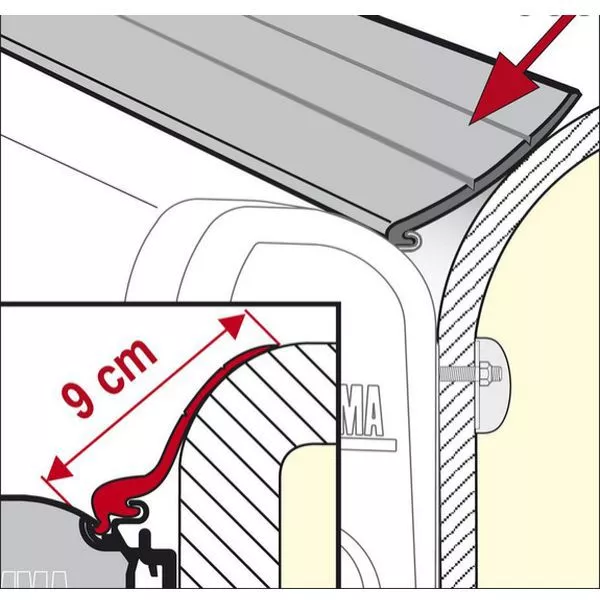 für Fiamma Markisen, die mit den bis zu 9 cm abstehenden Adaptern an der Wand oder an gewölbten Wänden montiert sind - Preis pro Meter