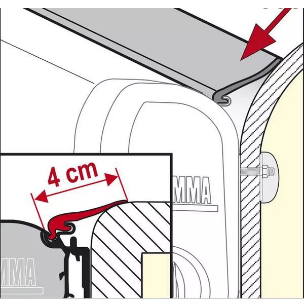 für Fiamma Markisen, die mit den bis zu 4 cm abstehenden Adaptern an der Wand oder an gewölbten Wänden montiert sind - Preis pro Meter
