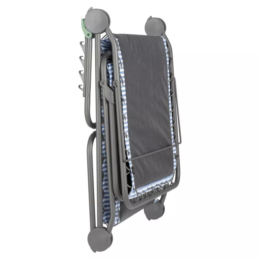 Die Sonnenliege Lafuma Siesta L hat zwei Funktionen. Diese Liege ist perfekt um ein Sonnenbad am Swimmingpool zu nehmen oder sich eine erholsame Pause im Garten zu gönnen. Desweiteren kann sie als Zustellbett zu Hause oder beim Camping genutzt werden. Den weichen und angenehmen Liegekomfort hat sie der Gummischnuraufhängung zu verdanken. Die Strand-Liege ist widerstandsfähig und spart Platz beim verstauen, da man sie zusammenklappen kann.