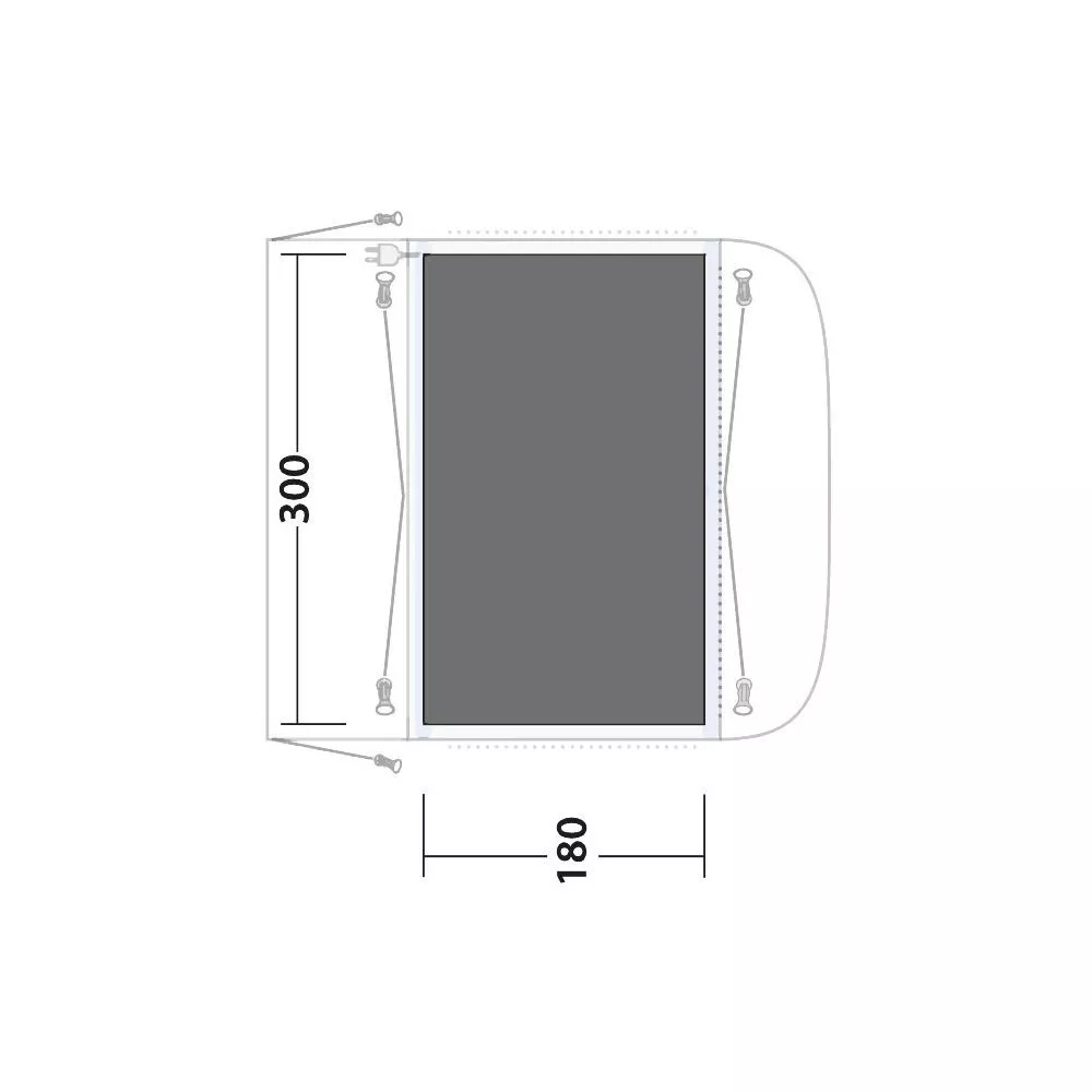 Für viele Camper ist eine Vorzelt-Unterlage ein absolutes Muss. Denn sie vermeidet Abrieb und Schäden und verhindert eine schnelle Abnutzung, sowie Verschleiss vom Vorzeltboden. Zusätzlich bildet sie eine Isolierschicht gegen die Kälte des Bodens. Bei Nässe hält sie das Vorzelt sauber. Die Outwell Unterlage sollte vom Bus- bzw. Vorzelt vollständig bedeckt sein, damit kein Regenwasser unter das Zelt geführt wird und sich dort sammeln kann. Mit den mitgelieferten Heringen kannst du die Plane perfekt ausrichten und befestigen.