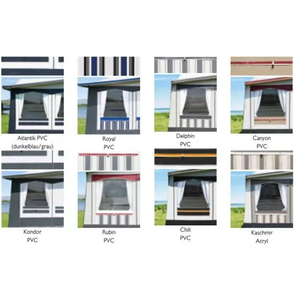 Die Individual- und Luxus-Klasse der dwt Vorzelte heisst Atelier Chalet. Denn hier kommt nichts von der Stange. Jedes dwt Atelier Vorzelt ist ein Unikat. Farbgestaltung, Material (PVC oder Acryl), Dachform (hier mit Vordach), Gestänge (Stahl- oder Alu), Vorderwand und Seitenwand-Gestaltung, Zelttiefe – du ganz allein entscheidest! Denn dieses Luxus-Vorzelt wird exklusiv fĂĽr dich – von Hand und mit viel Liebe zum Detail – angefertigt.