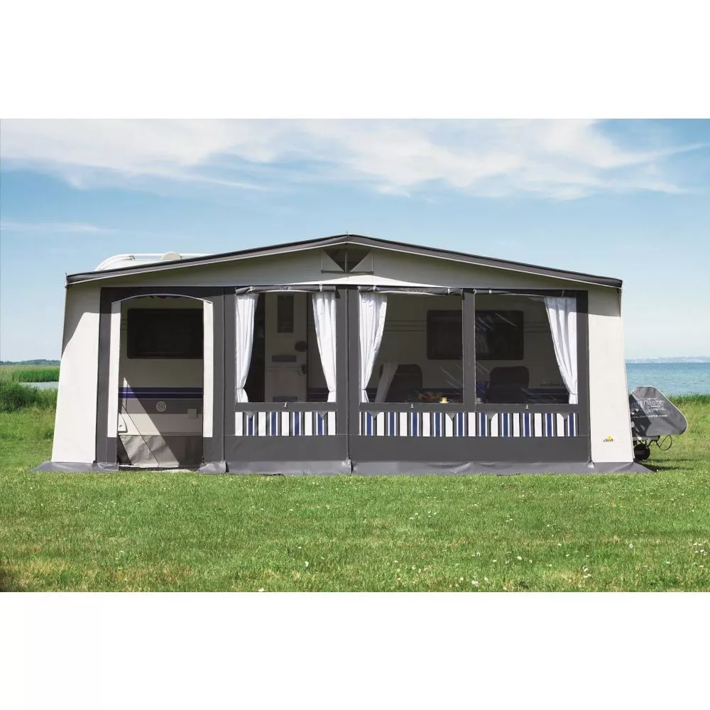 Das Vorzelt DWT Tango 240 ist ein Wohnwagenvorzelt für Dauercamper. Die umfangreiche Ausstattung dieses Vorzeltes und funktionelle Detaillösungen erfüllen die Erwartungen der anspruchsvollen und erfahrenen Camper. Am Platzangebot soll es nicht scheitern. Einfach kompromisslos.
